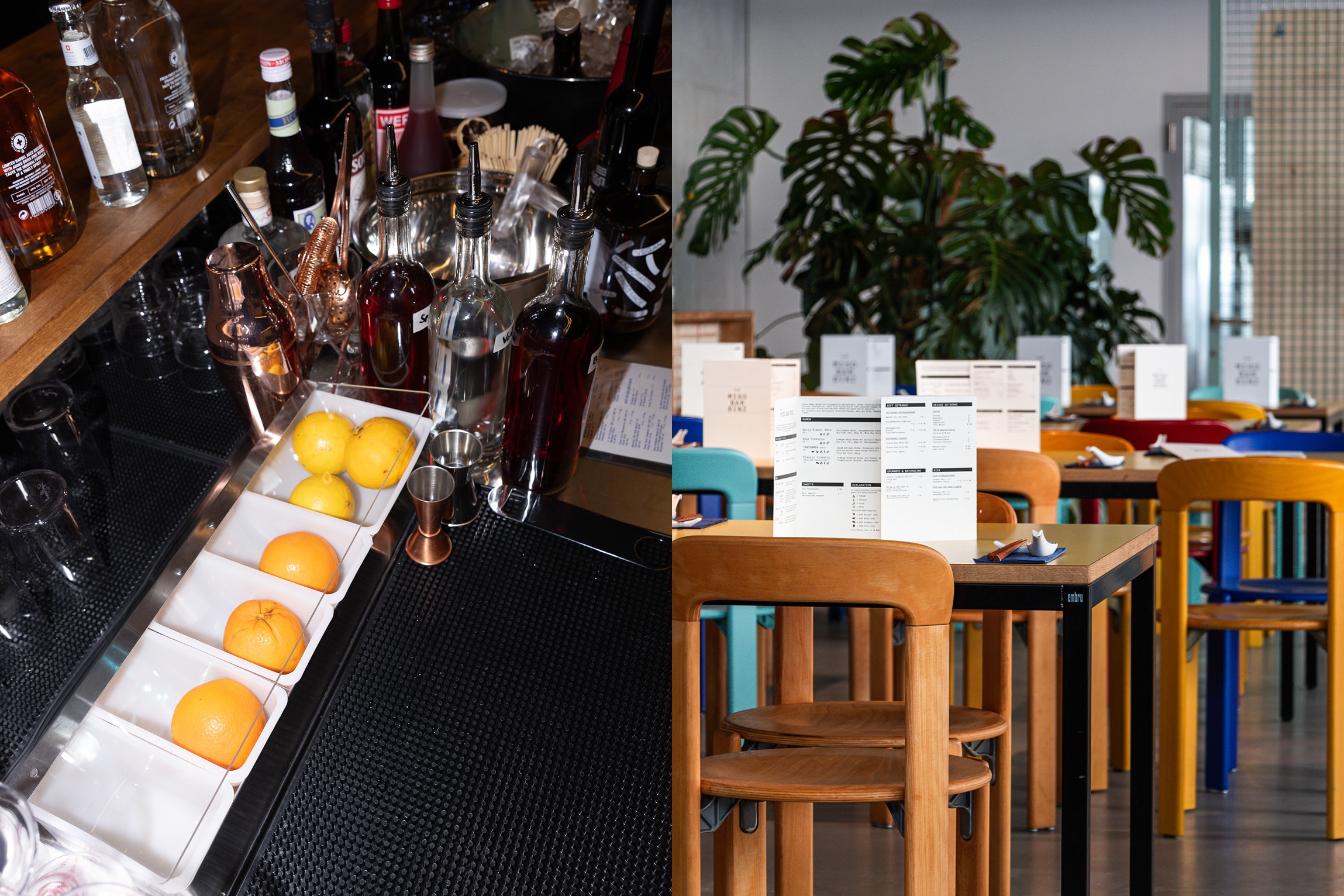 Innenbereich: Platz für bis zu 100 Gäste an der Bar, an Tischen oder im Steh-Apéro.